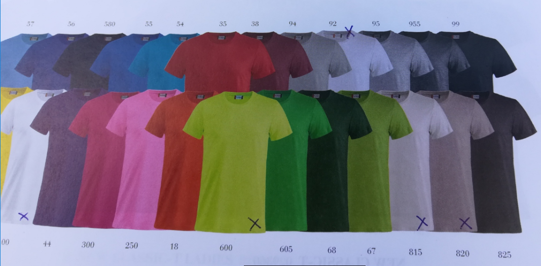 Hinnat ovat 15-18€/paita, riippuen tilauksen kokonaismäärästä. Värivalikoima alla, josta tulisi valita haluttu vaalean sävyinen paita. Uskon hinnan asettautuvan 15€, sen verran on jo ennakkotilauksia tullut.